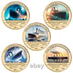 Collection 5pcs RMS Titanic Golden Commemorative Coins Set Titanic Gold Plated